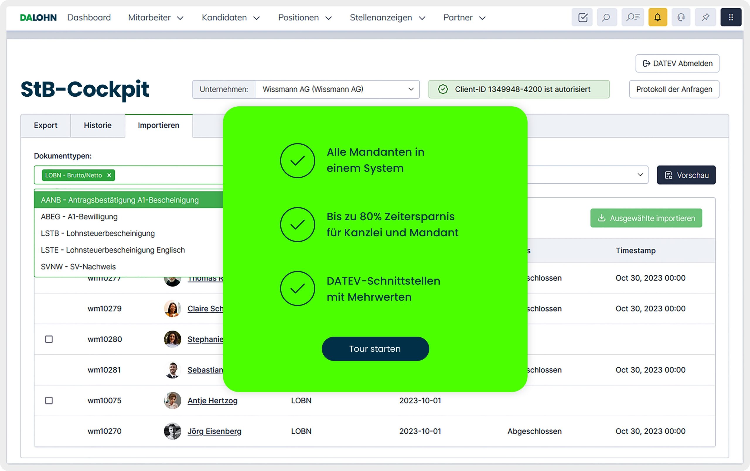 Mandanten und Mitarbeitende erfassen Stamm- und Bewegungsdaten selbst in